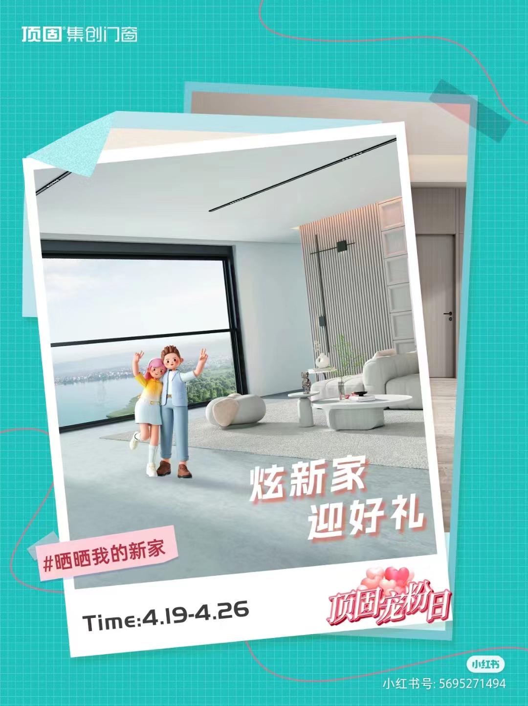 除此之外,活动期间顶固集创门窗还在官方抖号、小红书等平台发起了“晒新家”线上征集活动,并为参与的粉丝和用户准备了丰厚的礼品,以实际行动,回馈多年来一直关注、支持顶固集创门窗的粉丝及用户,并将更多健康、舒适、美好的家居装修方式、风格传递给大众。