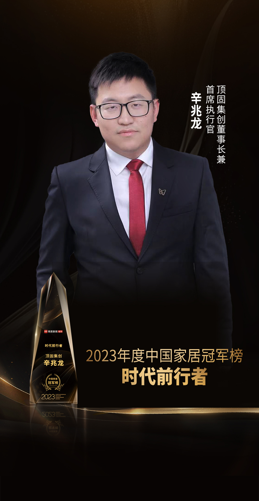 此外,顶固集创家居董事长兼首席执行官辛兆龙先生也被授予「时代潜行者」称号。在行业发展面临巨大挑战的当下,辛总坚守匠心,带领顶固集创家居在产品研发、运营模式以及公益事业上的不断开拓创新,为守护用户健康、构筑美好人居生活作出杰出贡献。