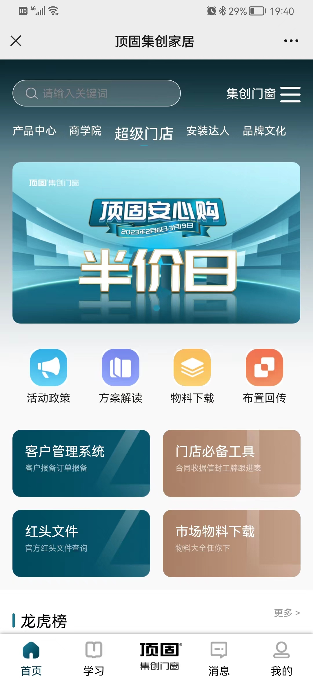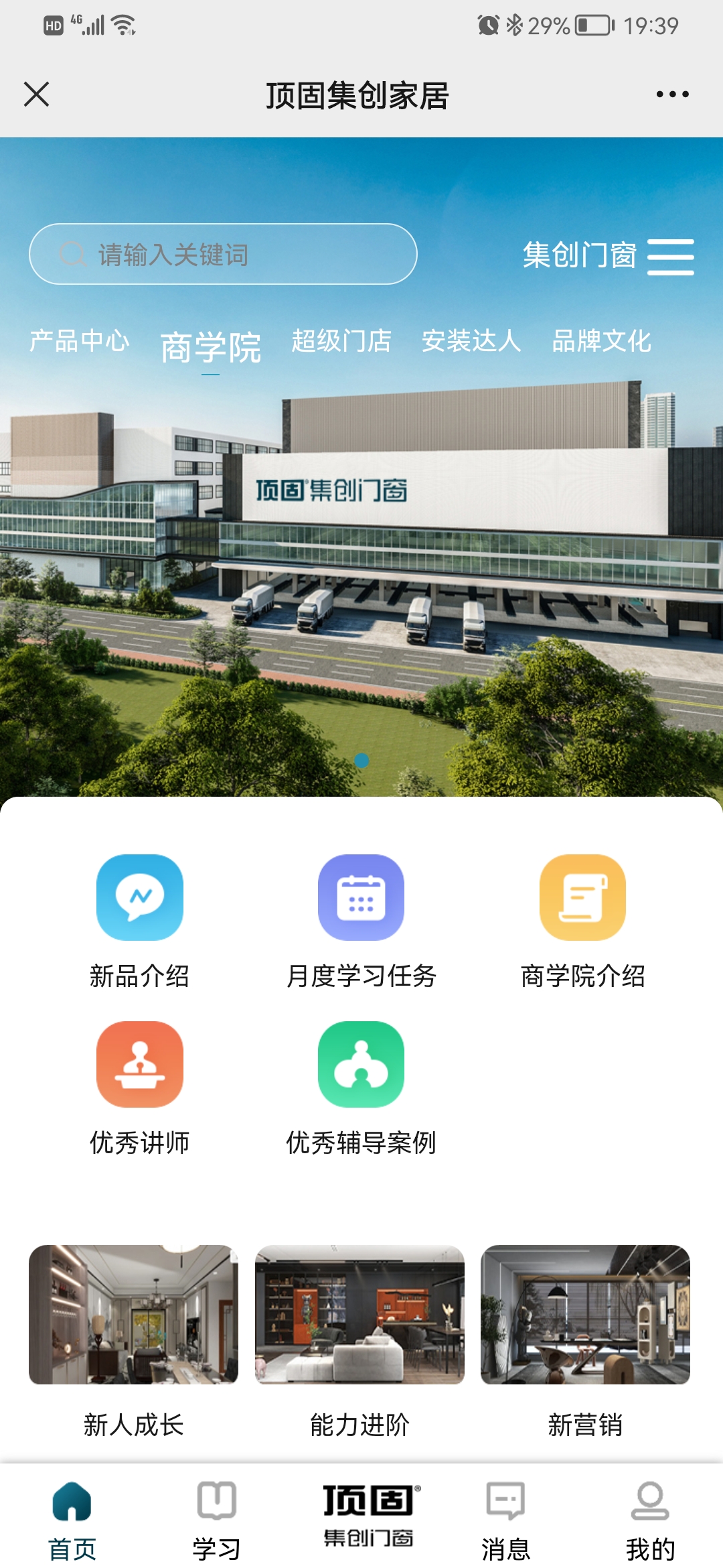 顶固超级商学院培训涵盖新人快速成长、老员工能力进阶、新营销实践经验培训、销售道具指南以及产品培训等等课程库,从多维度、多样化、全方位赋能终端营销和管理。游戏制运营模式,激活员工学习热情。APP形式,突破时空限制,手机在手,想学就学。